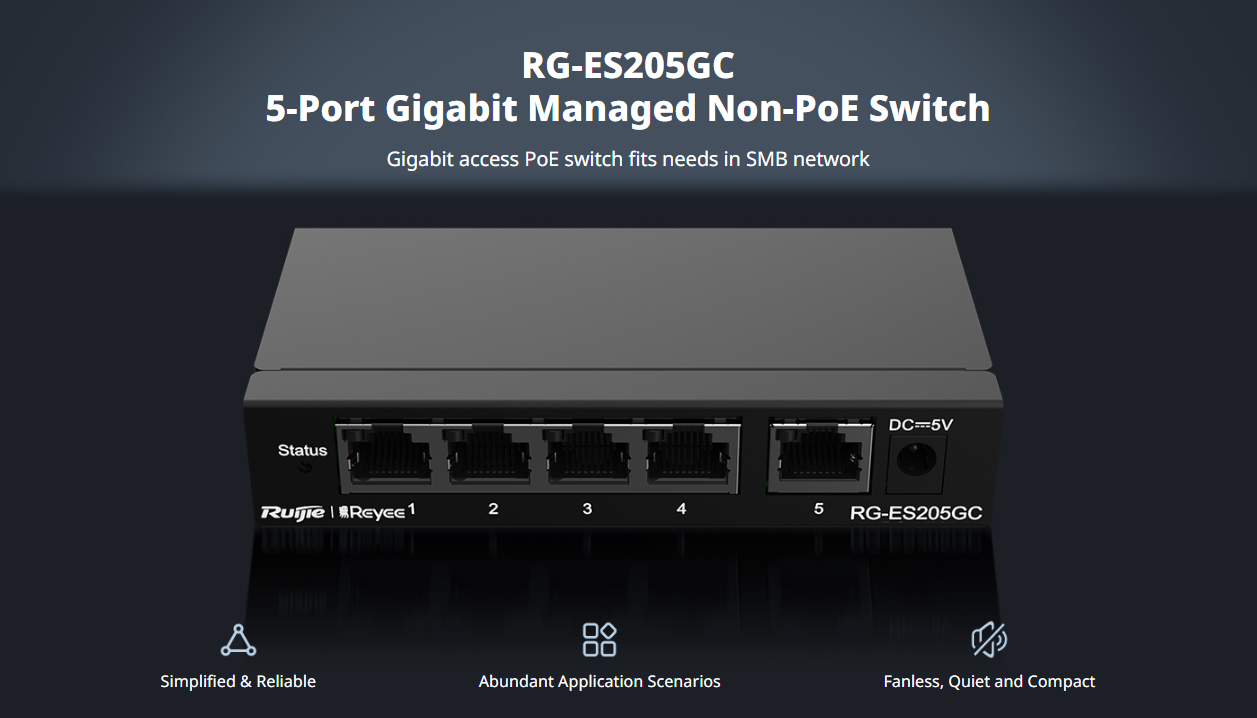 RG-ES205GC, מתג מנוהל ענן חכם ג'יגה-ביט עם 5 פורטים, ללא PoE
